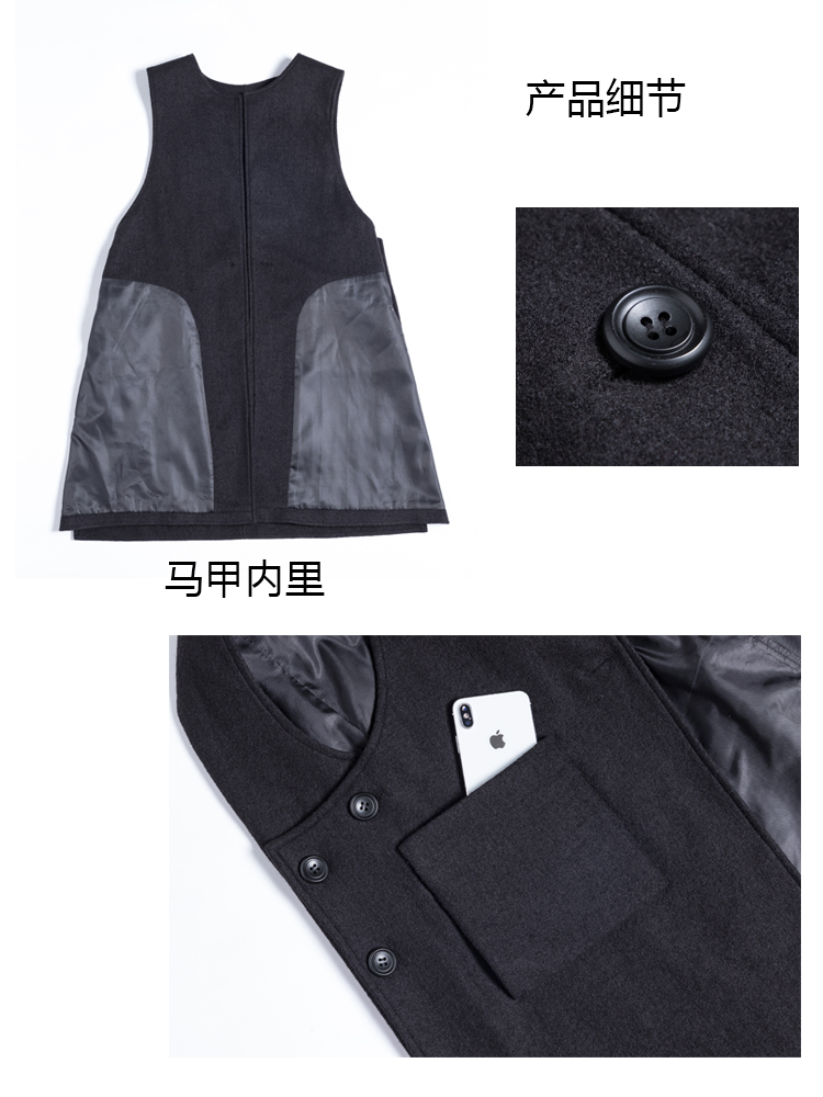 毛呢马甲女2021秋冬时尚新款大码宽松中长款无袖背心马夹坎肩外套