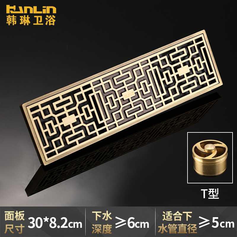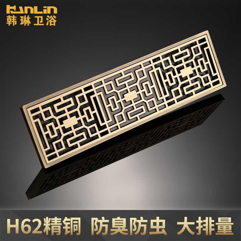 韩琳长地漏全铜纯铜方条形长型卫生间防臭下水道淋浴房厨房不锈钢