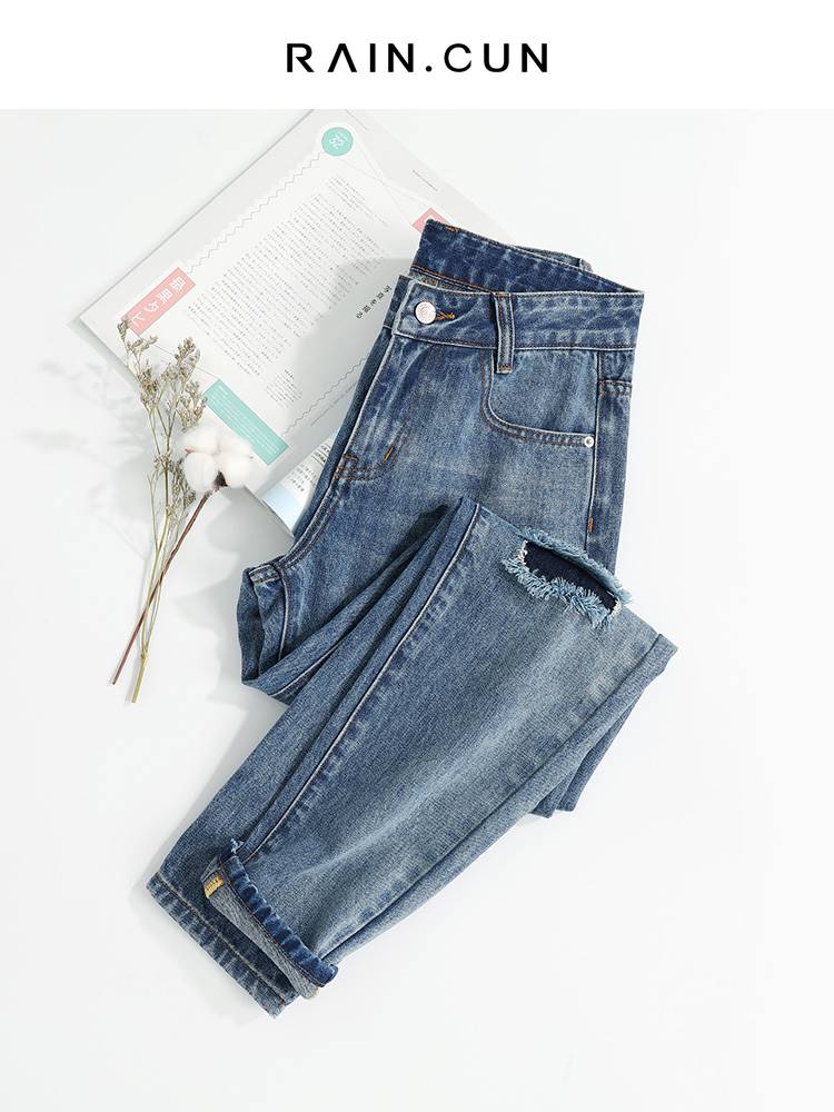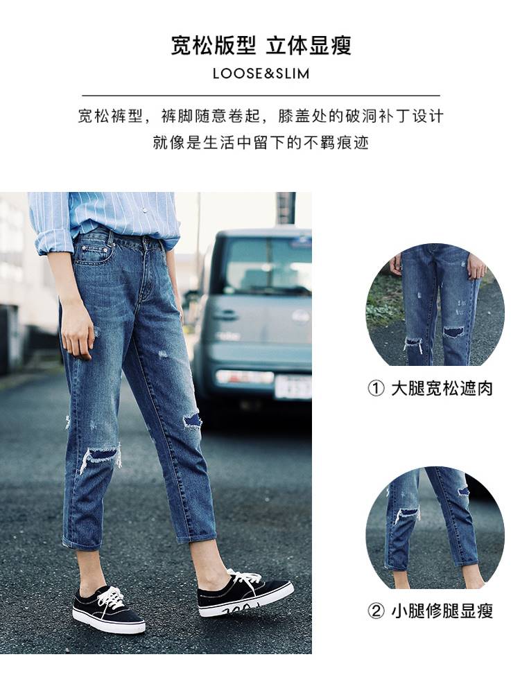 然与纯牛仔裤女宽松假破洞高腰梨形复古哈伦直筒显瘦萝卜老爹九分