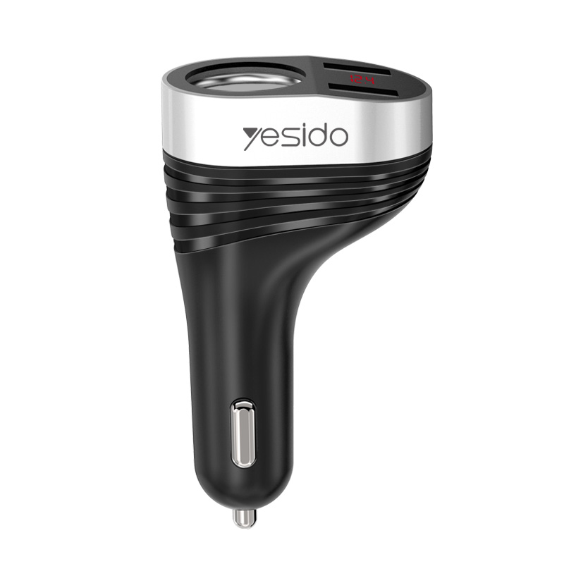 yesido汽车充电器一拖二多功能车载点烟器转换插头智能一拖三插座行车记录仪万能车充数显双口扩展货车12V24V