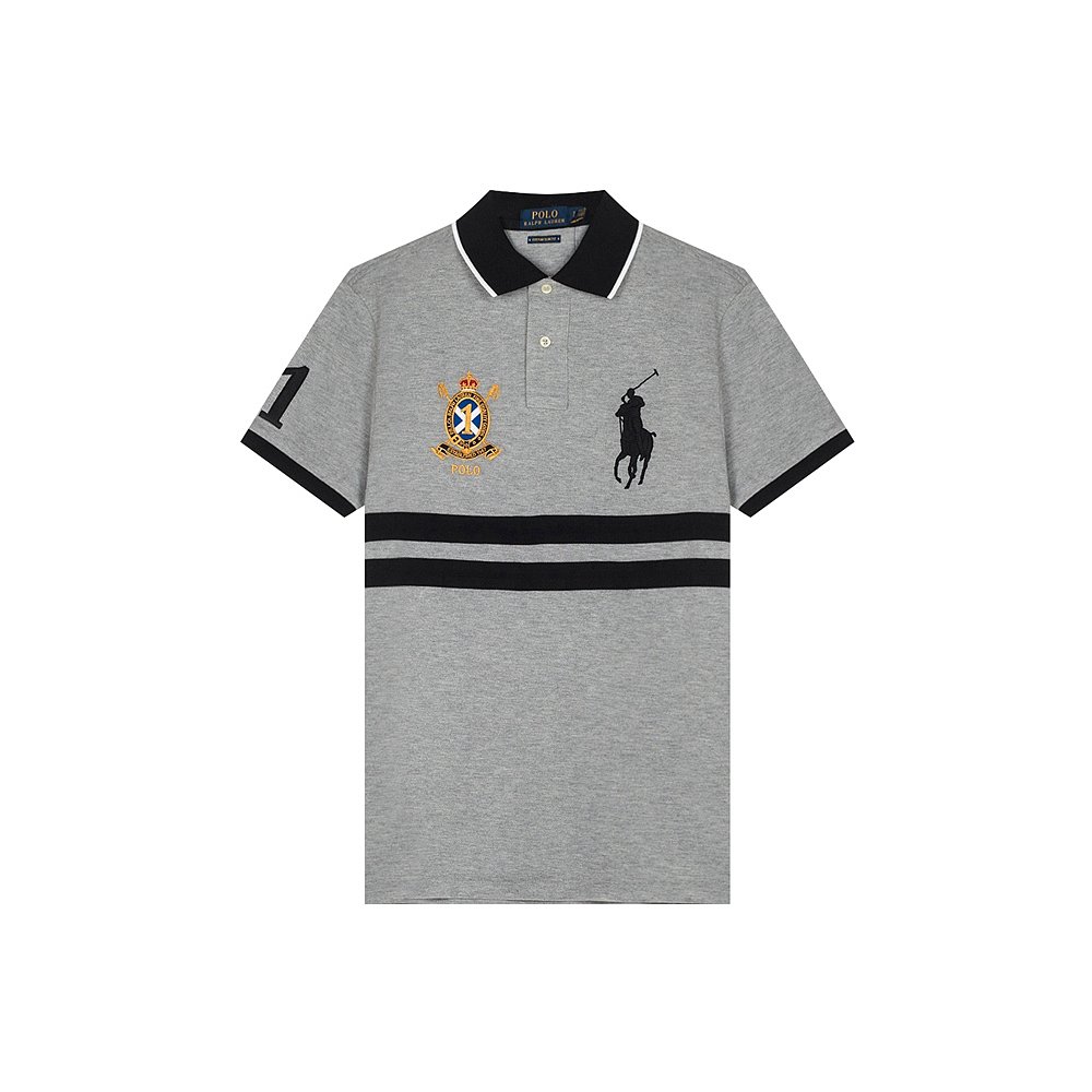 美国直邮POLORALPHLAUREN拉夫·劳伦男大马标宽横纹短袖polo衫灰