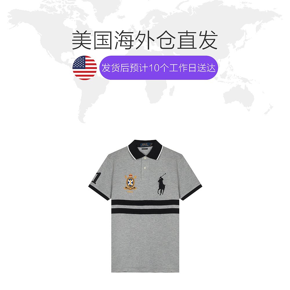 淘宝天猫国际美国直购优惠券,美国直邮poloralphlauren男polo衫优惠券,美国直邮POLORALPHLAUREN拉夫·劳伦男大马标宽横纹短袖polo衫灰优惠券