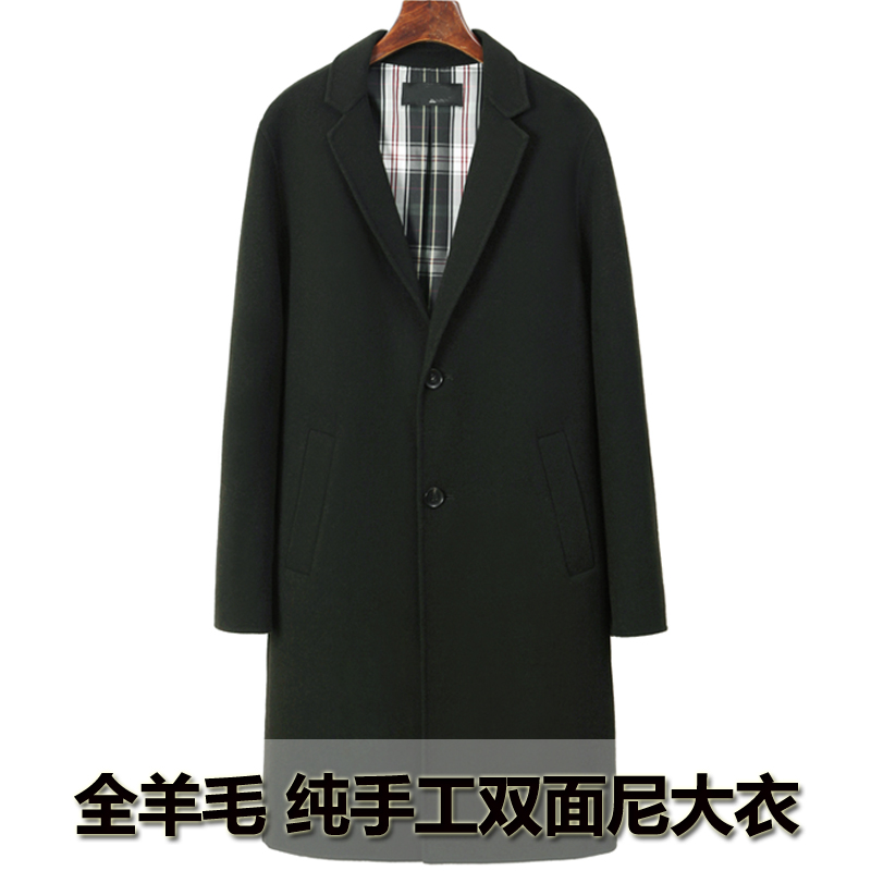 BIRD EAGLE PEACE秋冬新款黑色中长款羊毛呢过膝双面羊绒大衣男潮