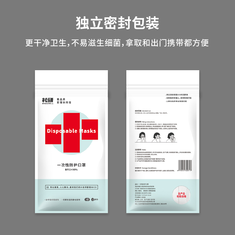 淘宝breazwell松研旗舰店优惠券,白色防尘透气独立包装优惠券,白色口罩一次性口罩三层时尚女男潮款黑色夏薄款防尘透气独立包装优惠券