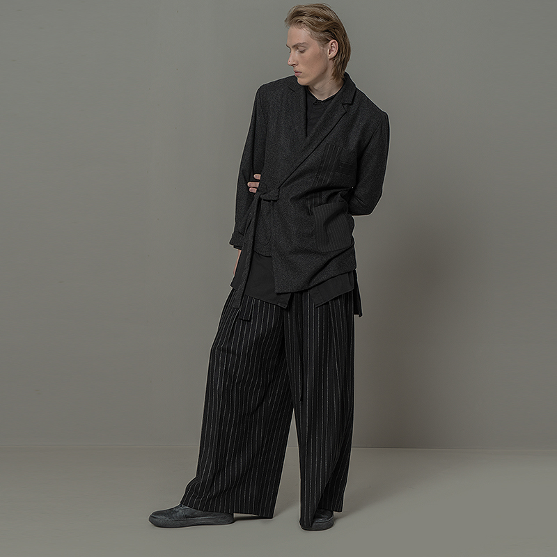 淘宝幻象者旗舰店优惠券,幻象者原创设计师日系复古羊毛西装优惠券,幻象者原创设计师日系复古羊毛西装 条纹拼接绑带宽松长袖西服男优惠券