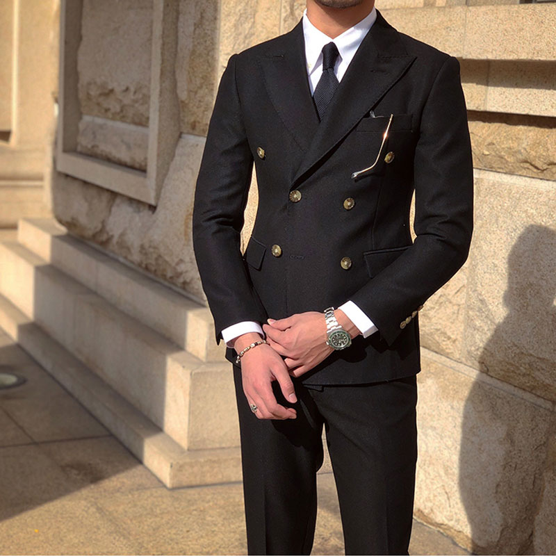 淘宝鹿三先生优惠券,宴会主持婚礼西装潮优惠券,鹿三先生自制男士深蓝大枪驳领双排扣西服套装宴会主持婚礼西装潮优惠券