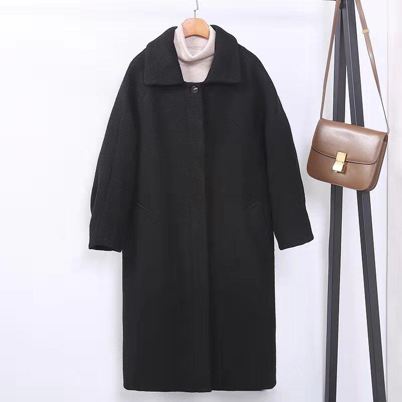 赫本黑色呢子大衣女小个子2021冬新款韩版中长款宽松加厚毛呢外套