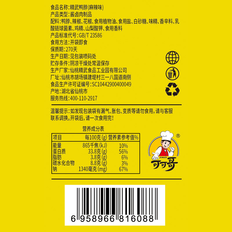 精武鸭脖450g武汉特产甜辣香辣味卤味鸭脖休闲解馋零食小吃货整箱