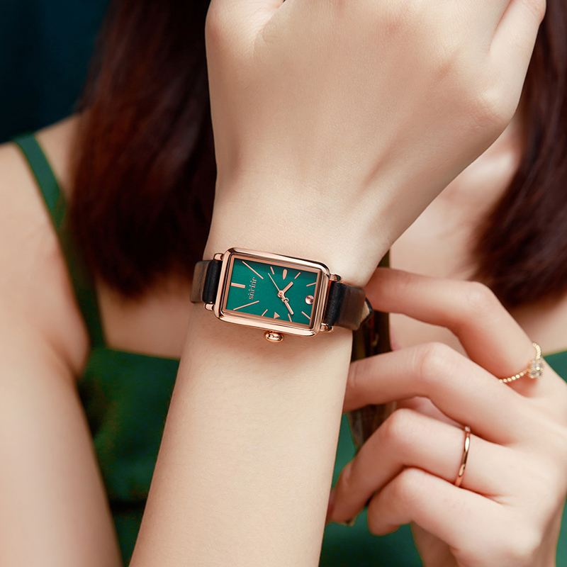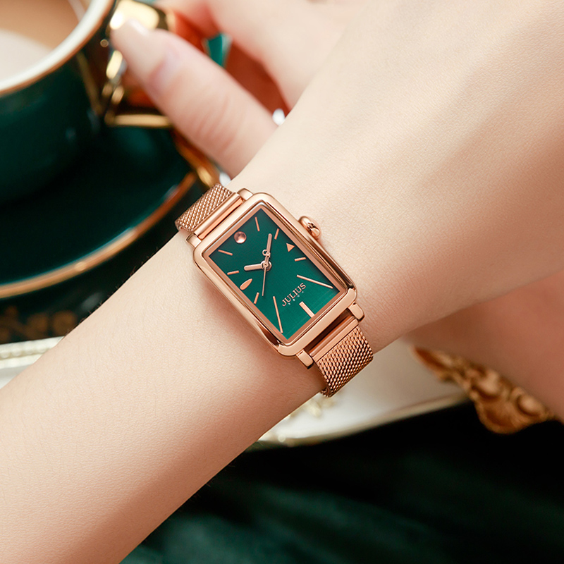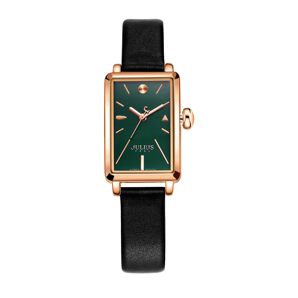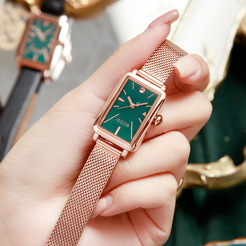 julius聚利时手表女夏季简约气质复古方形表盘小众防水皮带小绿表