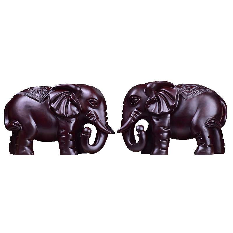 黑檀木雕大象摆件一对实木雕刻动物家居客厅办公室装饰红木工艺品