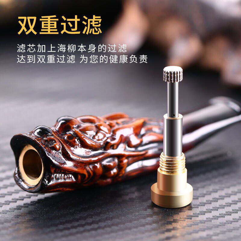 烟嘴男士可清洗M雕刻粗细烟海柳烟嘴活血柳双重循环拉杆戒烟